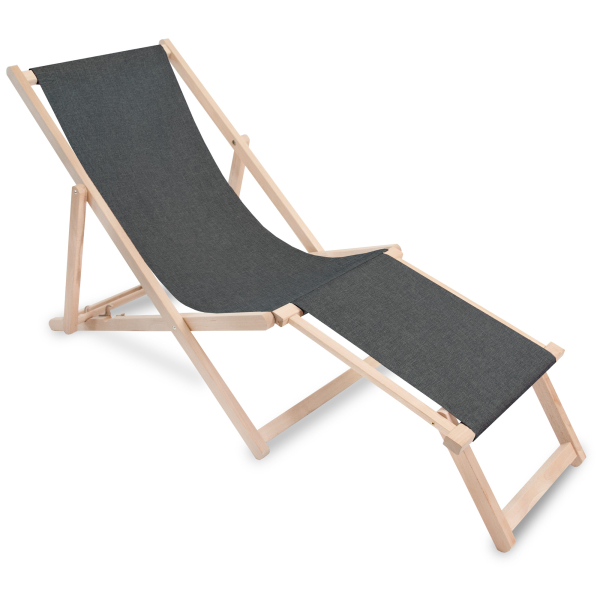 Leżak drewniany z podnóżkiem Imitacja Lnu Stony Beach